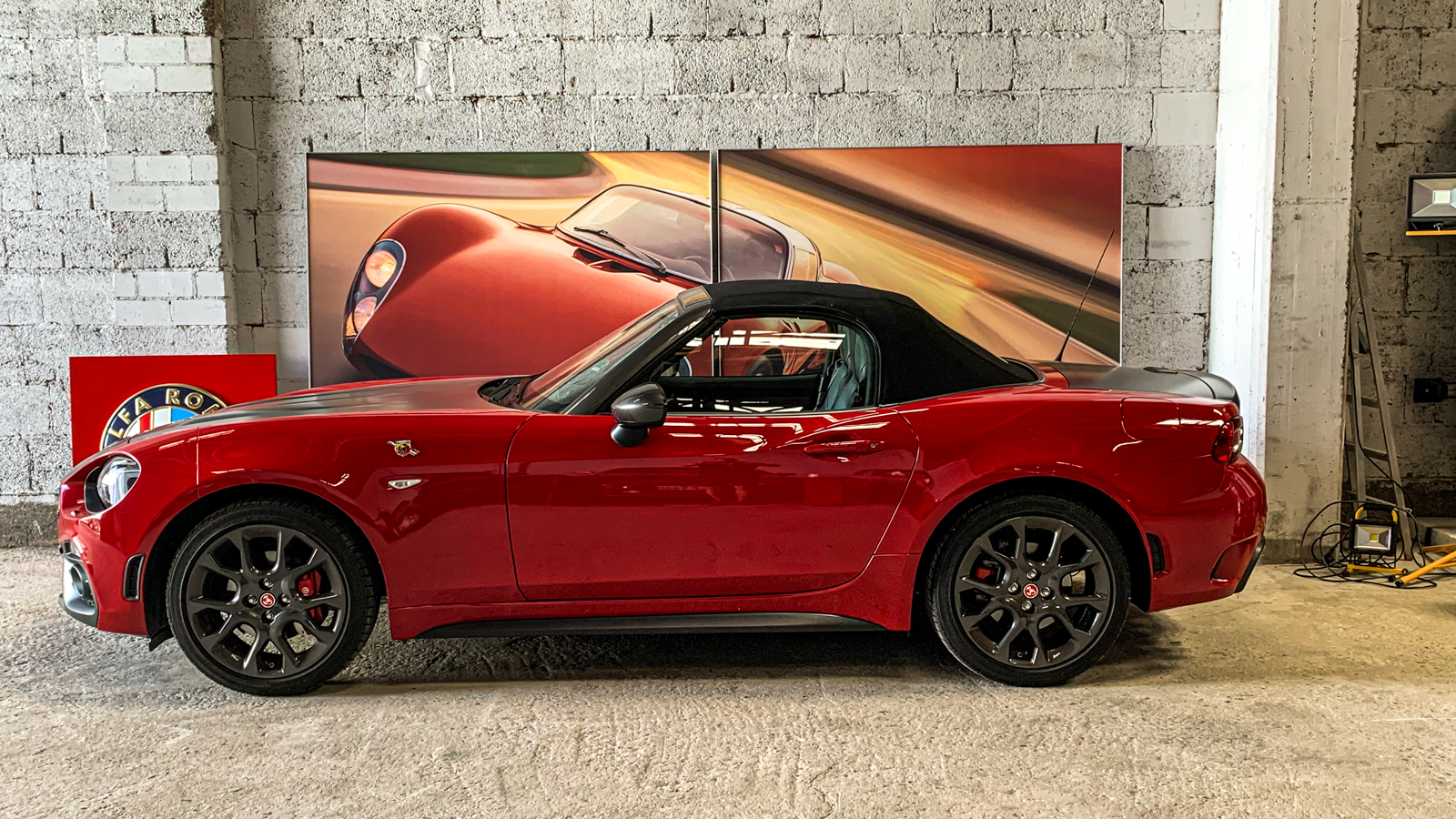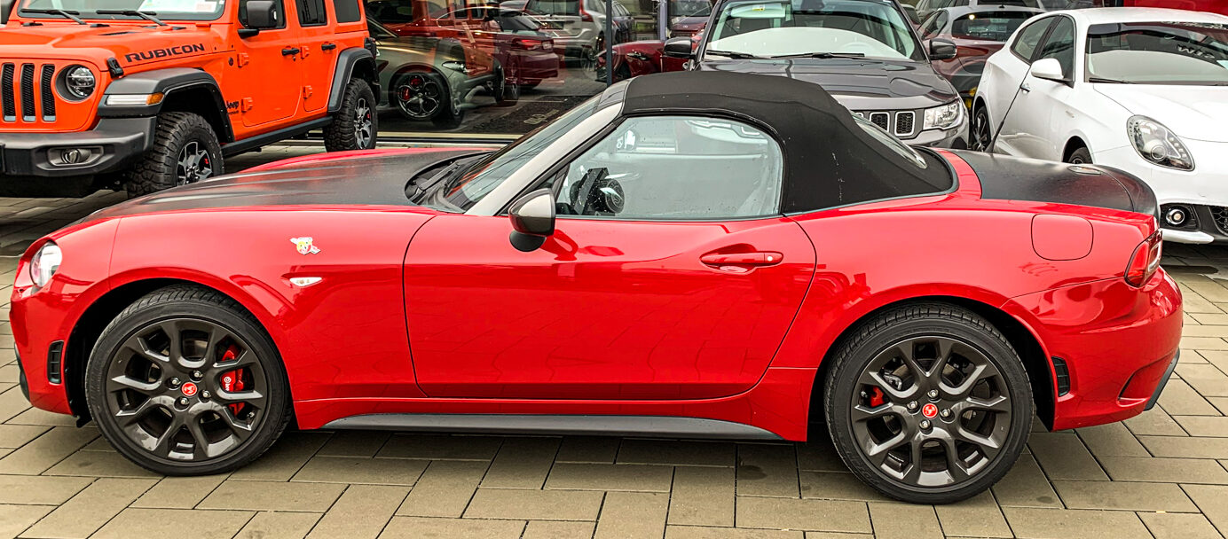 Abarth war Rennfahrer und Mechaniker und hat mit einem Investor die insolvente Automobilfirma Cisitalia erworben. Da der Betrieb zunächst in Bologna, später in Turin beheimatet war, lag es nahe, mit Fiat zusammen zu arbeiten und sowohl deren Fahrzeuge für den Rennsport vorzubereiten, als auch, teilweise auf Fiat, Simca und Alfa Romeo Basis, sehr erfolgreiche Kleinserien zu bauen und sie im Rennsport einzusetzen. Kurz vor seinem Tod hatte der im Sternzeichen des Scorpion geborene Abarth sein Unternehmen dann an Fiat verkauft. Seitdem brachte Fiat in Eigenregie regelmäßig Butter und Brot Modelle als sportliche Fiat Abarth, später wieder unter dem Eigennamen Abarth auf den Markt. Man denke an die „sagenumwobenen“ Fiat Modelle Ritmo Abarth und Punto Abarth. Erst mit dem neu aufgelegten Fiat 500 kamen wieder eigenständige Abarthmodelle auf den Markt, die sehr beliebt sind und den legendären Ruf von getunten Abarthfahrzeugen wieder aufleben ließen. Das letzte, leider mittlerweile wieder eingestellte Modell aufgrund Auslaufens des Vertrages mit Mazda, war der Abarth 124 Spider. Dieses Fahrzeug hat eine lange und erfolgreiche Historie als Rallyefahrzeug, daher auch die Kriegsbemalung mit der mattschwarzen Motorhaube, die den Fahrer vor Spiegelungen schützen soll. Umso glücklicher bin ich, noch ein letztes Exemplar, wenn auch nicht neu, dennoch neuwertig erworben zu haben.