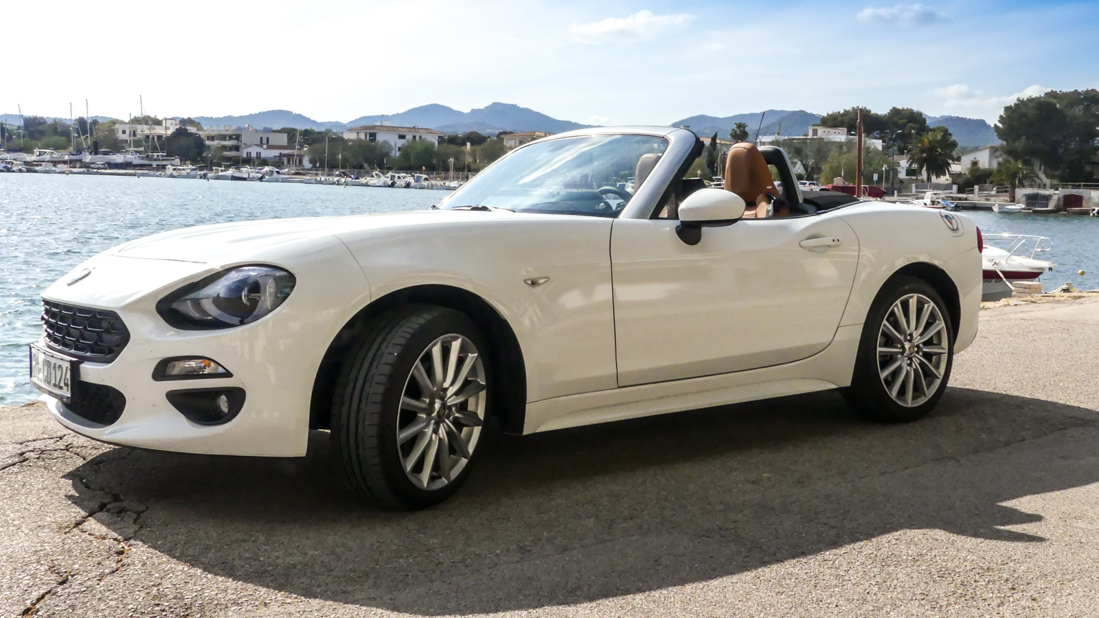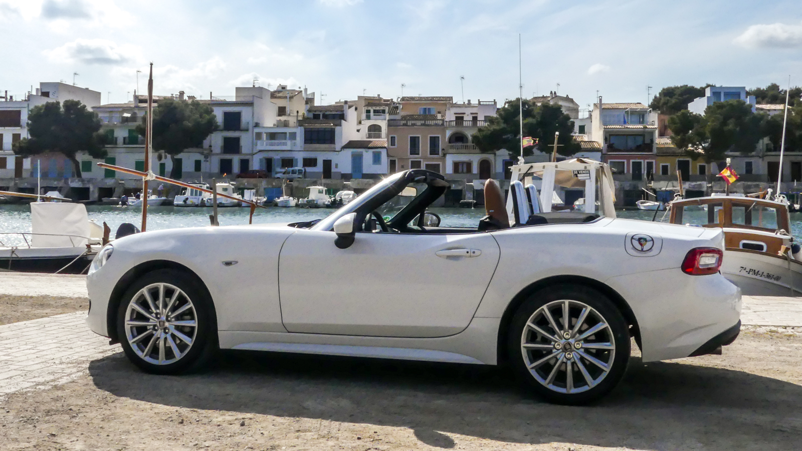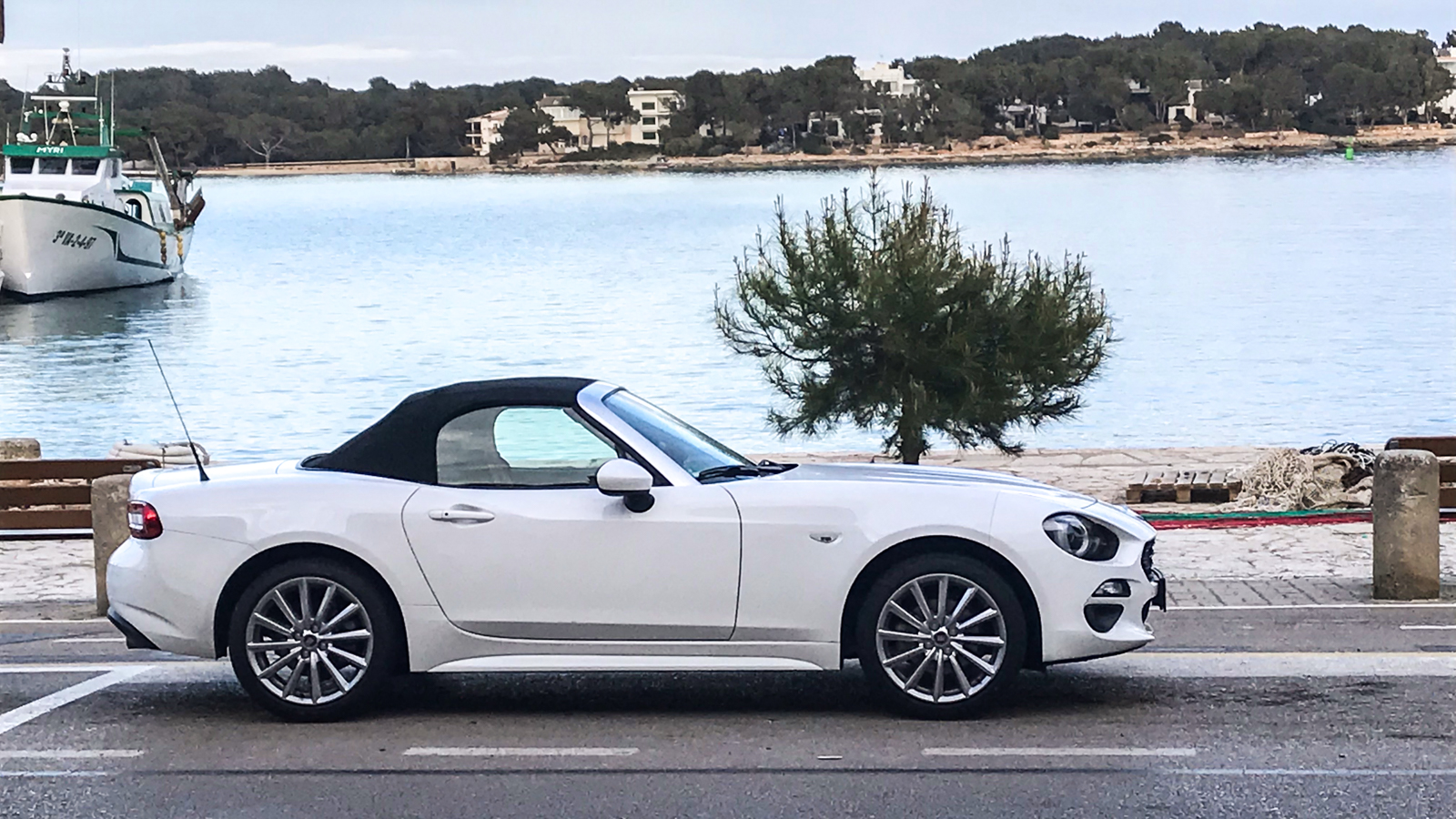Auch den 124 Spider habe ich im Frühjahr 2018 mit der Fähre auf eigener Achse auf die Insel gebracht. Der Spider passt, wie erwartet, mit seinem mediterranen Flair hervorragend nach Mallorca. Sowohl das Brötchen holen beim Bäcker in Porto Colom, als auch Touren über die Insel oder Shoppen in Palma machen gleichermaßen Spaß. Er ist schmal genug für die teilweise sehr schmalen Straßen Mallorcas, er dreht lebendig aus jeder Spitzkehre hoch und man erlebt die Natur ungefiltert, da jederzeit präsent und hat immer das Gefühl, schneller zu sein, als man ist. Wenn das mal nichts ist!