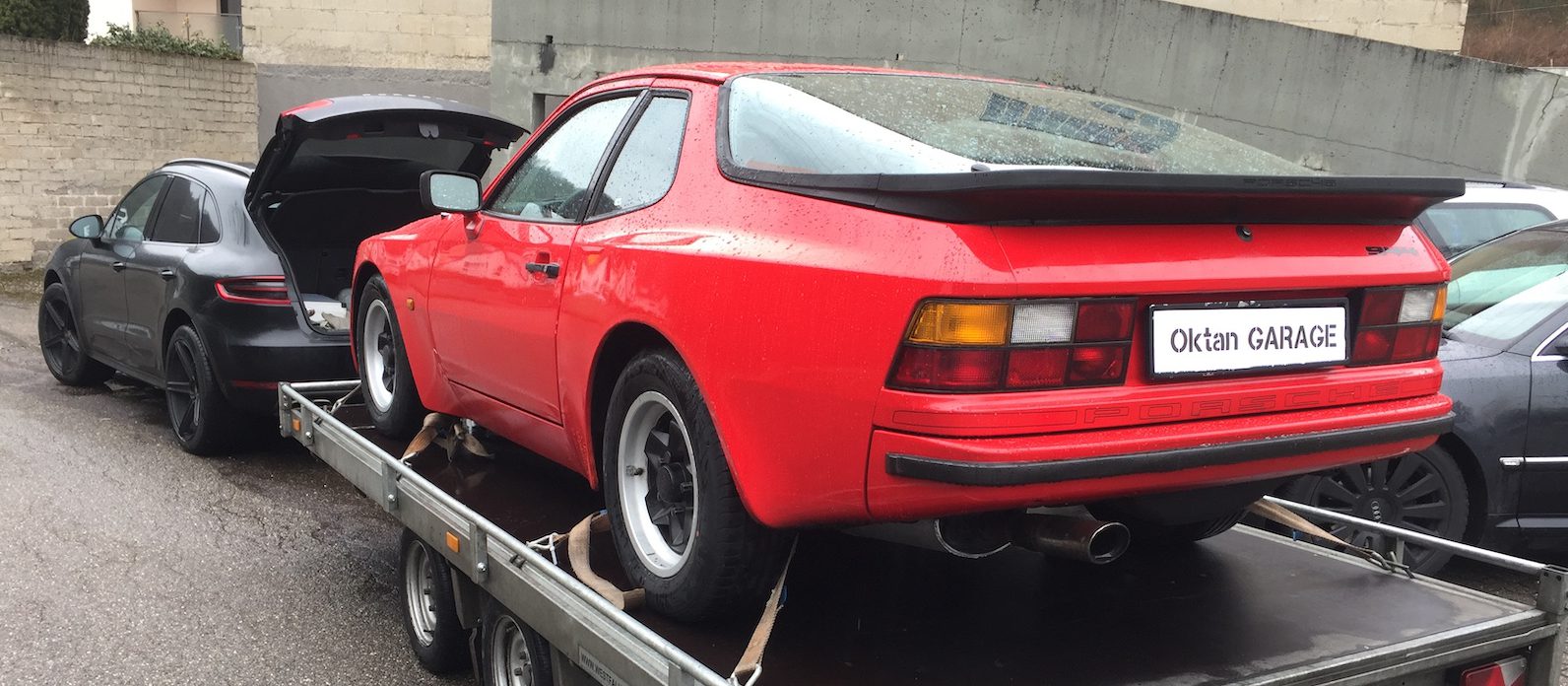 Nachdem bereits ein Porsche 944 Serie 1 zu meinem Fahrzeugbestand gehört, habe ich mich entschieden, einen weiteren 944er anzuschaffen, um mein Projekt „historischer Rennwagen“ umzusetzen. Ich habe mir in mobile.de vier Autos geparkt, einen Anbieter angeschrieben, der auch am nächsten Morgen zurückgerufen hat. Es ging dann alles ganz schnell. Mit dem Macan nach Vallendar am Rhein gefahren und den Porsche in so einer Hinterhofwerkstatt besichtigt, der Motor lief und drei Mechaniker waren dabei, das Auto trocken zu reiben.