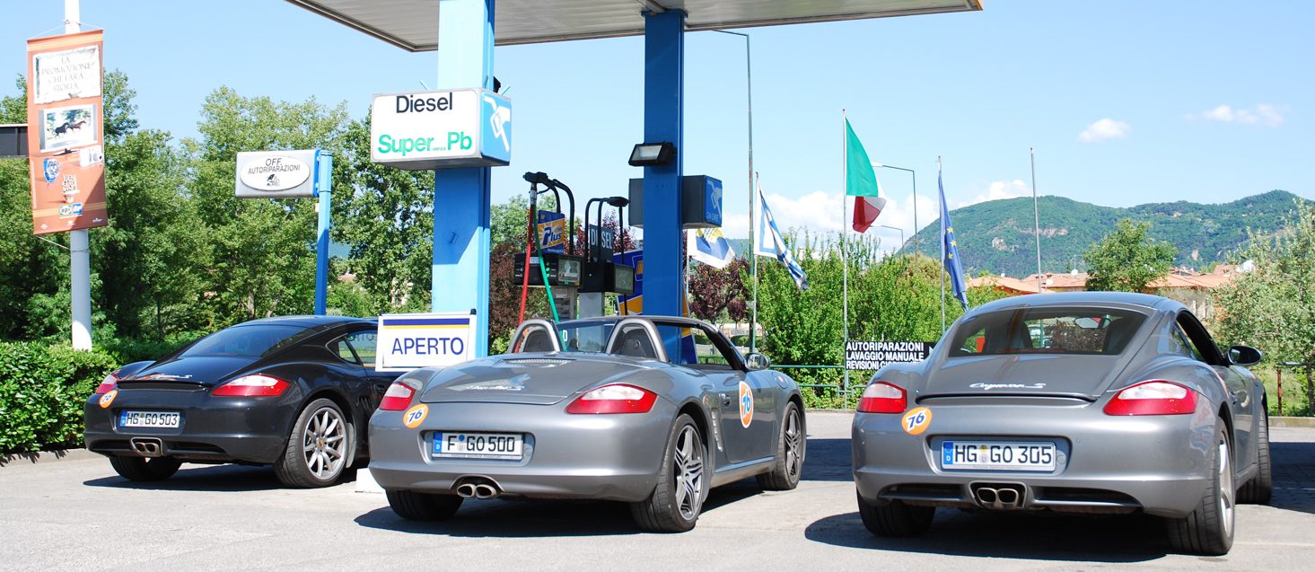 Und wir mit unseren 3 Porsche der Baureihe 987. Que bella macchina!